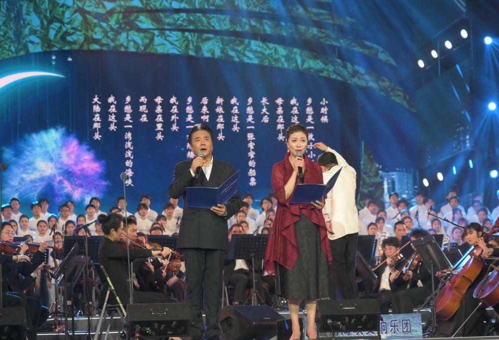 3月24日,岳红(右)和张秋歌在朗诵《乡愁》。新华社记者 林善传 摄