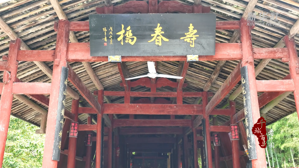 寿春桥,也称翁坑桥,位于福建省寿宁县犀溪镇翁坑村,距今已有一百多年的历史。桥全长19.6米,是一座较为袖珍的贯木拱廊桥。春日里的寿春桥掩映在一片青绿中,四周绿植环绕,桥下溪水潺潺,桥体建筑古色古香,行走在桥上,仿佛穿梭于古今交错的时空中,令人心驰神往。