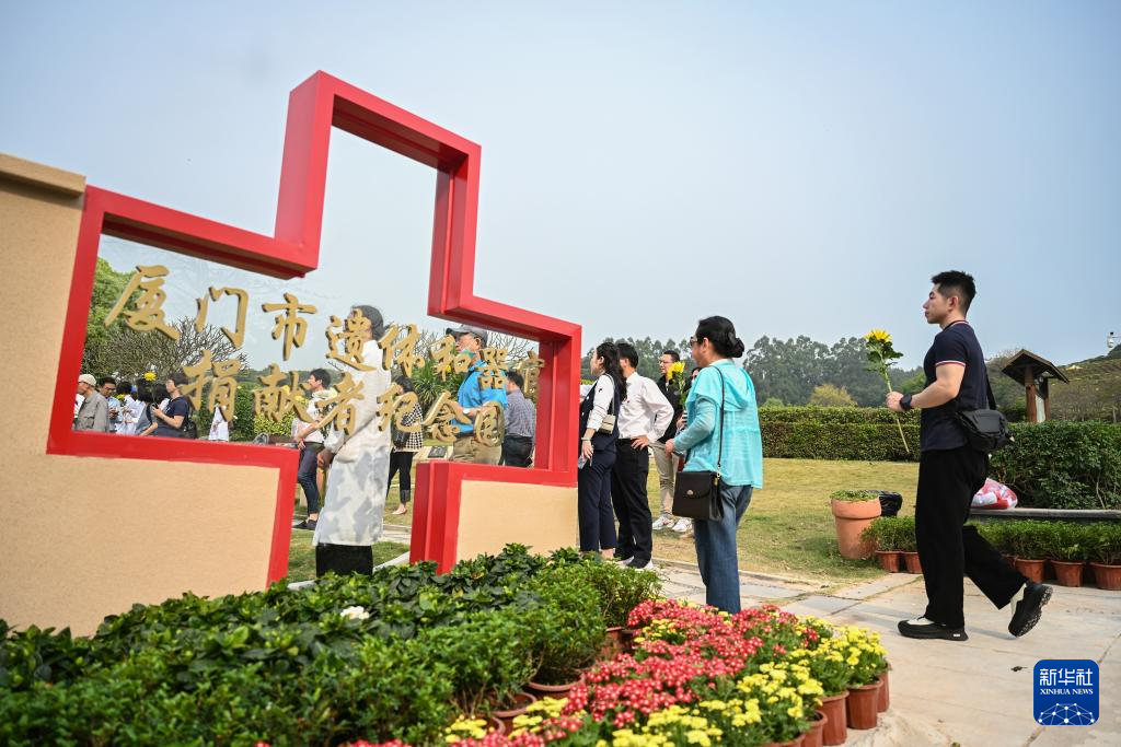 3月29日,在海沧文圃山厦门市遗体和器官捐献者纪念园,市民手捧鲜花参加纪念活动。新华社记者 周义 摄