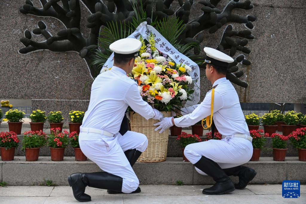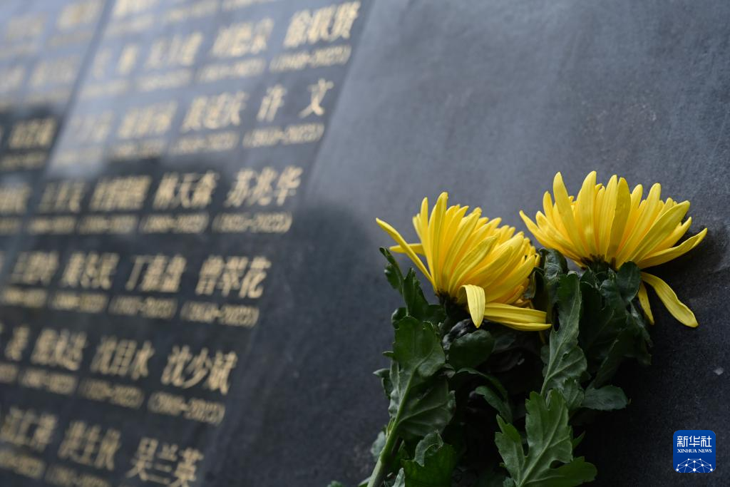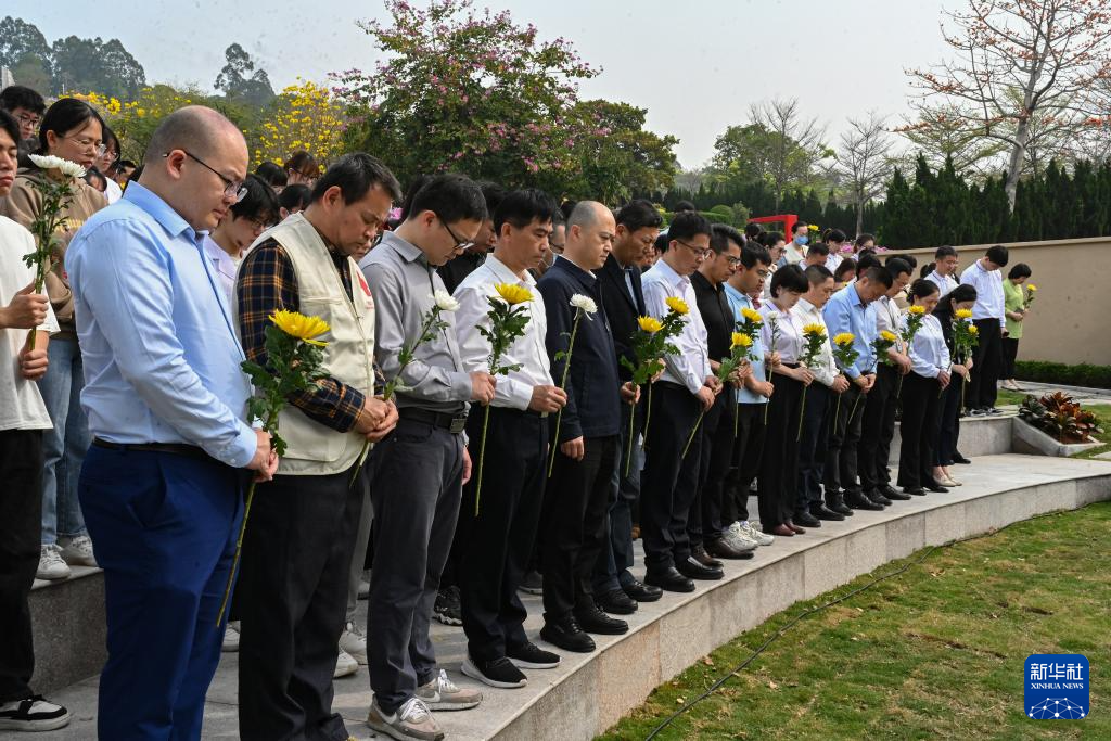 3月29日,在海沧文圃山厦门市遗体和器官捐献者纪念园,现场全体人员肃立默哀。新华社记者 周义 摄