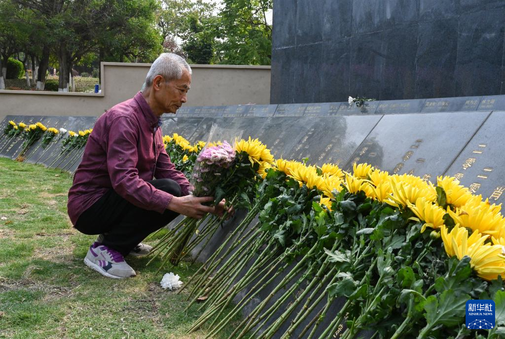 3月29日,在海沧文圃山厦门市遗体和器官捐献者纪念园,纪念活动代表向遗体和器官(眼角膜)捐献者献花。新华社记者 周义 摄