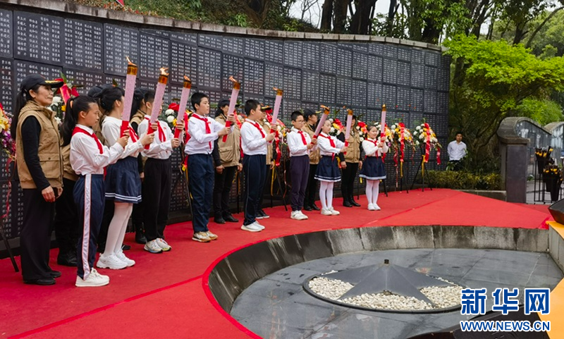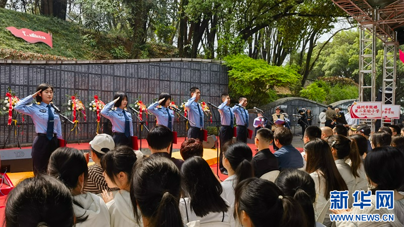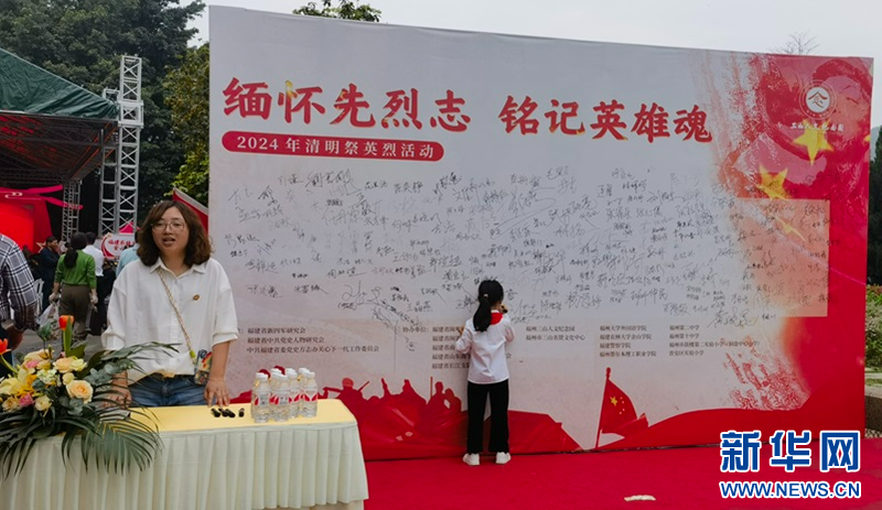 新华网福州3月31日电(刘丰)3月31日,“缅怀先烈志 铭记英雄魂”2024清明祭英烈缅怀纪念活动在福州三山人文纪念园举行。在福州抗日志士纪念墙前,烈士后人代表、青少年代表等各界人士通过敬献花篮、火炬传递、诗歌朗诵等形式,寄托哀思、缅怀先烈,感受信仰的力量。