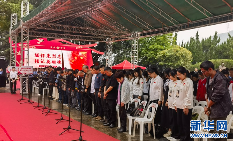 活动现场,全场来宾庄严肃立,向先烈默哀致敬。 新华网 刘丰 摄