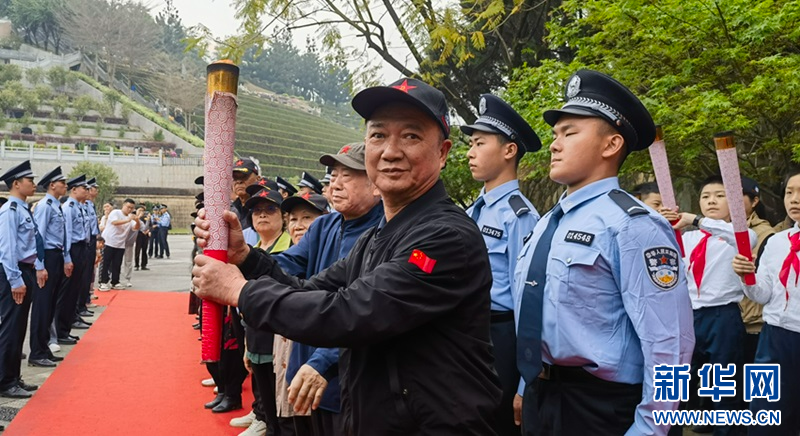 活动特别设置了火炬传递环节,以“薪火相传”的方式,将革命先辈的精神与信仰代代相传。 新华网 刘丰 摄