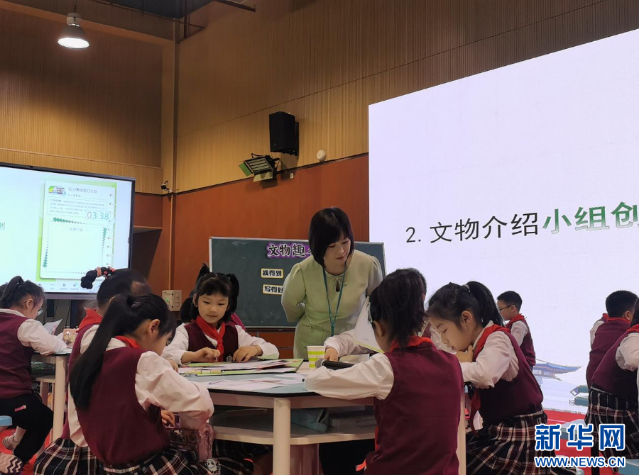 福州市中山小学朱莹老师开设“文物趣名片”课程。新华网发(福州市中山小学供图)