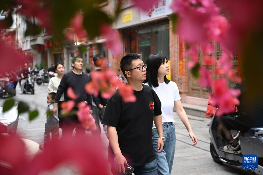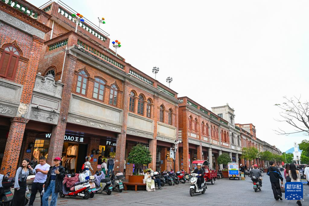 4月10日,人们在泉州中山路游览。新华社记者 周义 摄