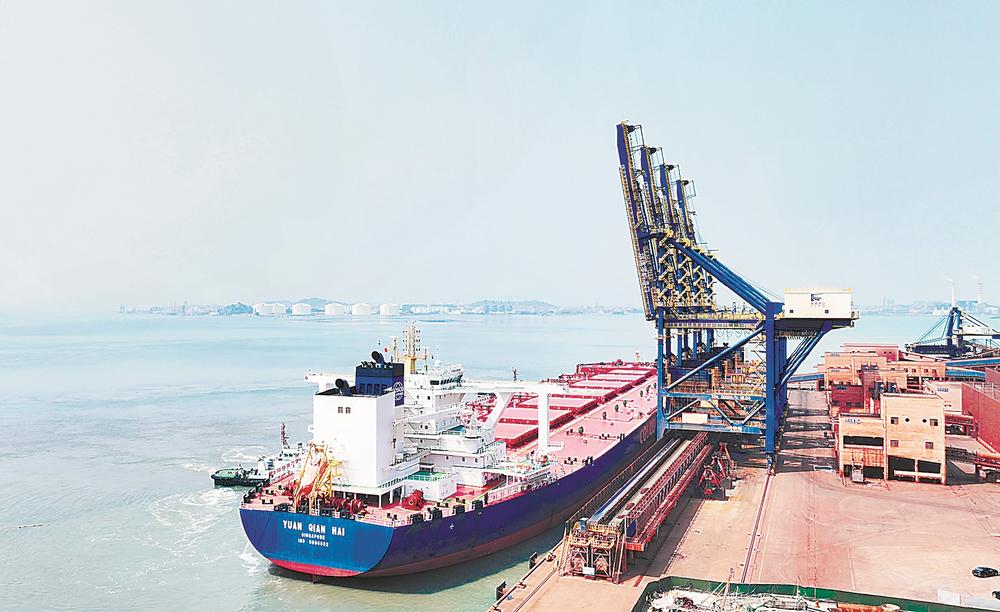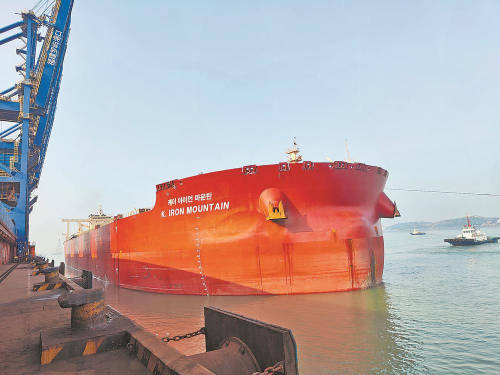 据介绍,各部门多岗位通力配合,高效保障超大型船舶“抵之能靠”“靠之即卸”,这标志着罗屿作业区常态化靠泊、接卸超大型船舶的能力日趋成熟。(记者 张颖 通讯员 陈瑶 王慧芹 摄影报道)