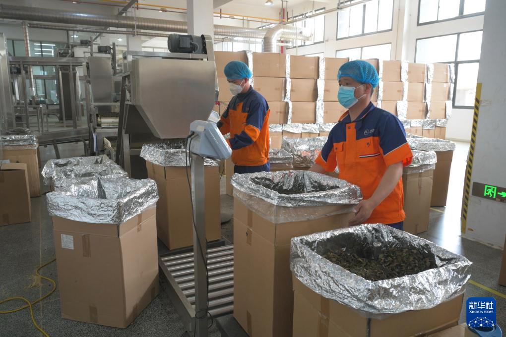 4月10日,福建品品香茶业有限公司工人在生产车间包装白茶半成品。新华社记者 林善传 摄
