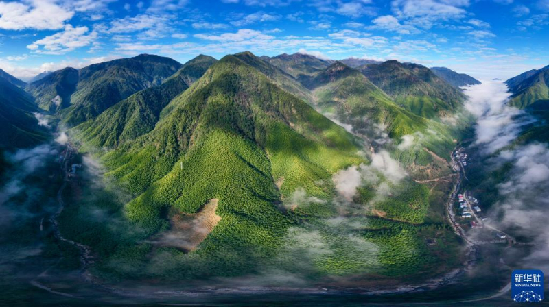 武夷断裂带峡谷内云雾缭绕,村庄若隐若现(资料图)。新华社记者 姜克红 摄