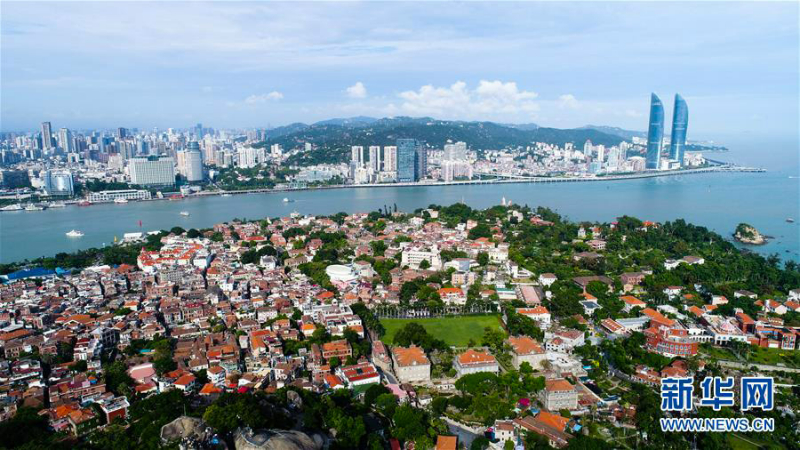 鸟瞰厦门鼓浪屿和厦门岛(资料图)。新华社记者 王建华 摄