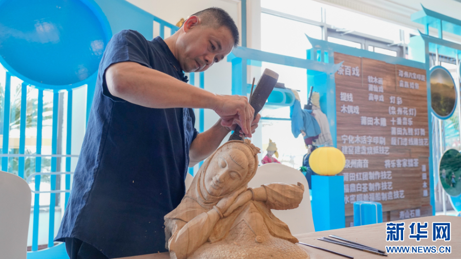 图为活动现场的木雕展示。新华网 蒋巧玲 摄