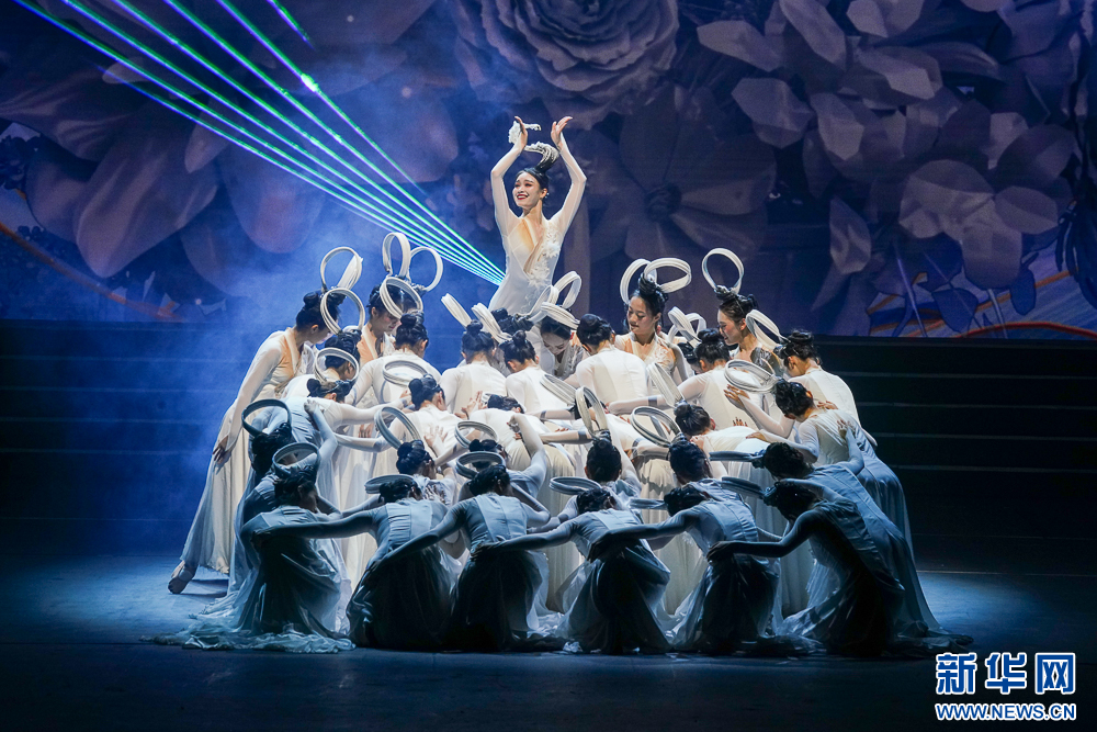 这是女声独唱与舞蹈节目《一白独秀》演出片段(4月17日摄)。新华网 肖和勇 摄