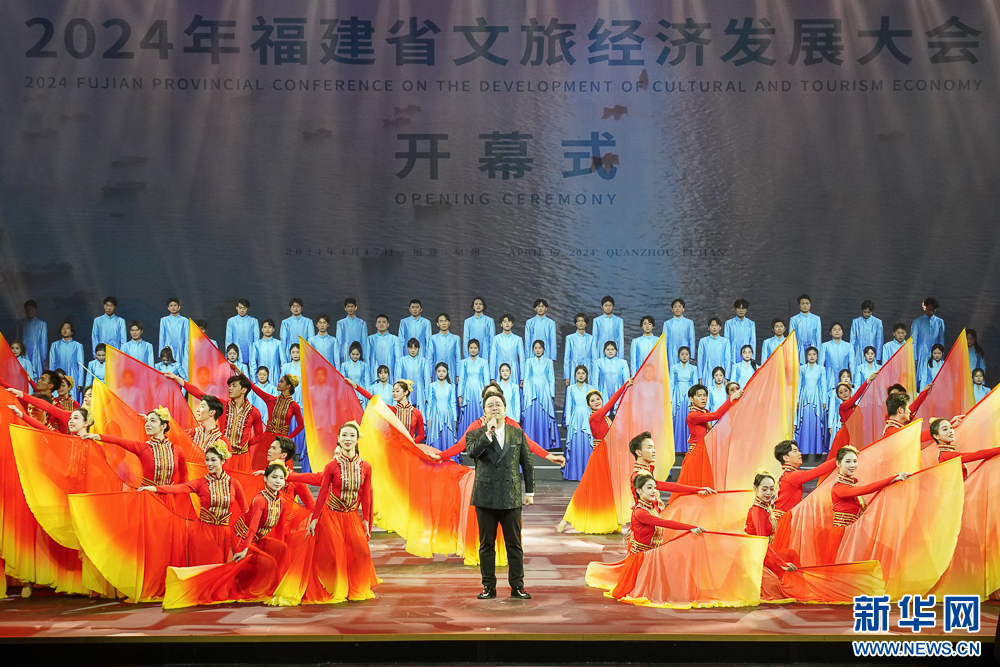 4月17日,2024年福建省文旅经济发展大会在泉州市开幕。当晚,开幕式情景音画推介演出《万里海丝路 千年刺桐情》上演。