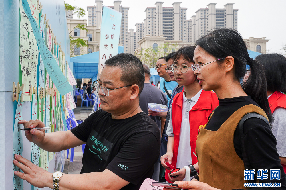 4月23日,漳州市长泰区举办国学主题灯谜会,市民群众在猜灯谜。新华网 肖和勇 摄
