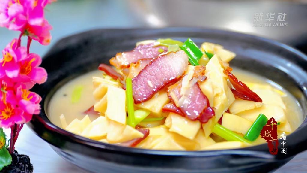 腊肉春笋煲是福建省邵武市吴家塘镇的一道春日限定美食。春笋改刀,焯水后加入腊肉煸炒,再加入高汤、虾仁和各种调料后倒入煲锅,持续加热一段时间,一碗脆爽咸香的腊肉春笋煲就做好了。乳白的汤汁中漂浮着鲜嫩春笋,一口下去,满满都是春天的味道。