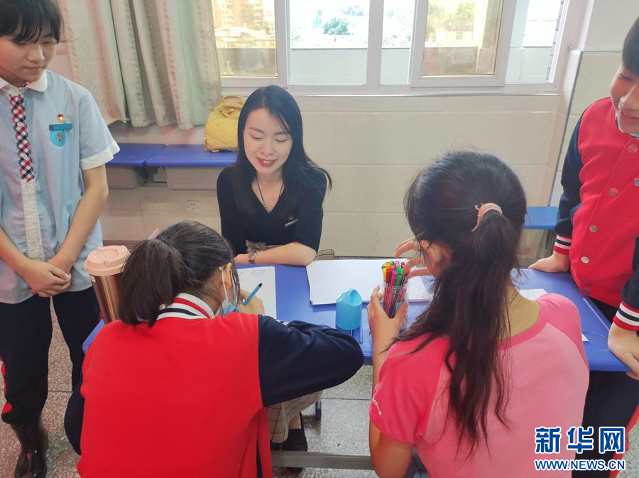 福建医科大学健康学院心理学系老师林丽华在福州市洪塘中心小学(淮安校区)向孩子们科普心理健康知识。新华网发(福建医科大学供图)