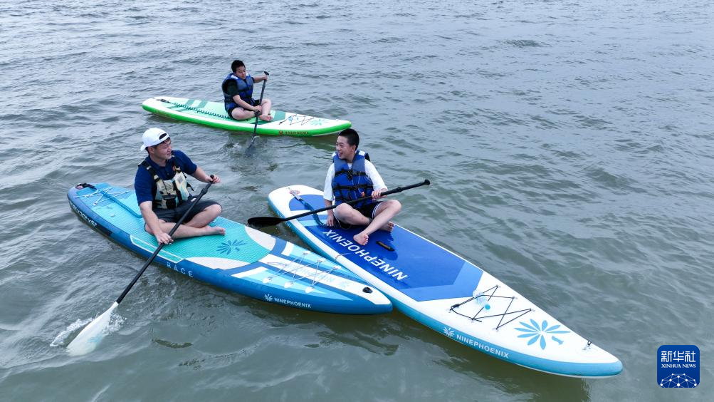 “哪怕掉进水里,也很有趣。刺激的冲浪、休闲的桨板,即便不能成功地学会站姿划行,也能累了躺在桨板上,感受水流,看看蓝天白云、夕阳晚霞,也是一种惬意。”“80后”户外运动爱好者林立说,他基本上一周就来一次,如今他的孩子也乐在其中。