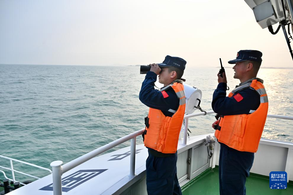 4月29日,福建平潭海警在伏季休渔海上联合执法巡航中观察海上情况。新华社记者 姜克红 摄