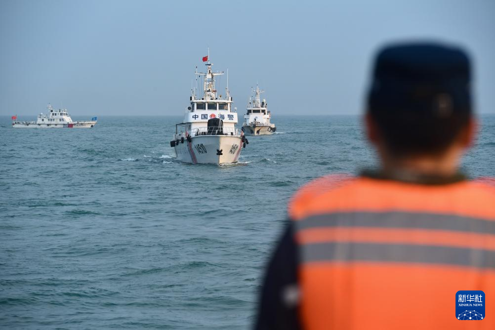 4月29日,福建平潭海警、渔政、海巡、海监等船只在辖区海域开展伏季休渔海上联合执法巡航。新华社记者 姜克红 摄