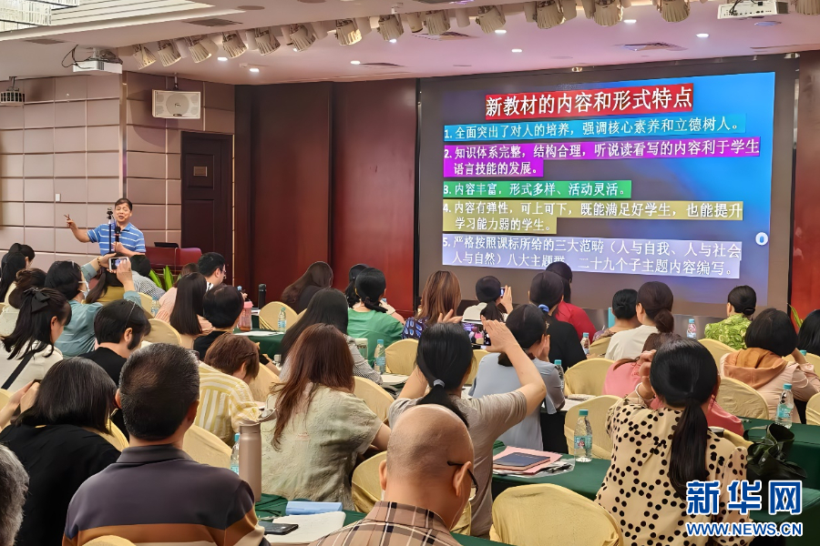 与会者就仁爱版初中英语教材开展学习和交流。 新华网发(主办方供图)
