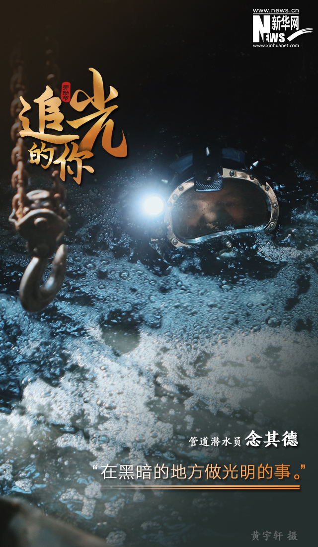 念其德,管道潜水员,主要进行水下封堵、拆堵管道等作业,从业15年。