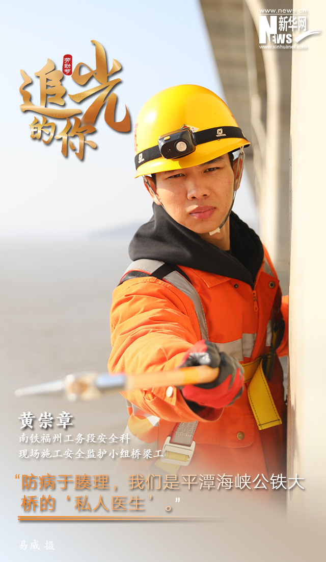 水深狂风舞、流急浪滔天,福建平潭海峡是世界三大“风口”海域之一。黄崇章和他的同事便在这片“魔鬼风域”里工作。他们是平潭海峡公铁大桥的“私人医生”,下桥墩、上拉索、顶风攀爬,为大桥“诊脉”,防病于腠理。