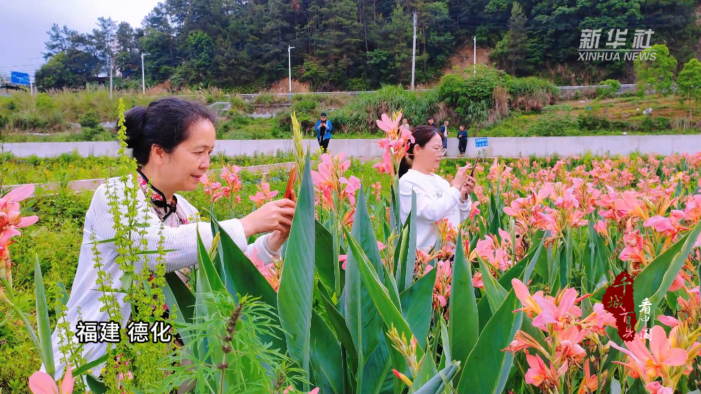 近日,福建德化月亮湾人工湿地公园的美人蕉花开正艳。美人蕉叶片宽阔而翠绿,花瓣粉嫩娇艳,色彩对比强烈。人们畅游其中,纷纷驻足拍照,留住关于五月的美好记忆。