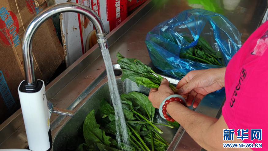 这是岛上居民用自来水清洗蔬菜。新华网 刘默涵 摄