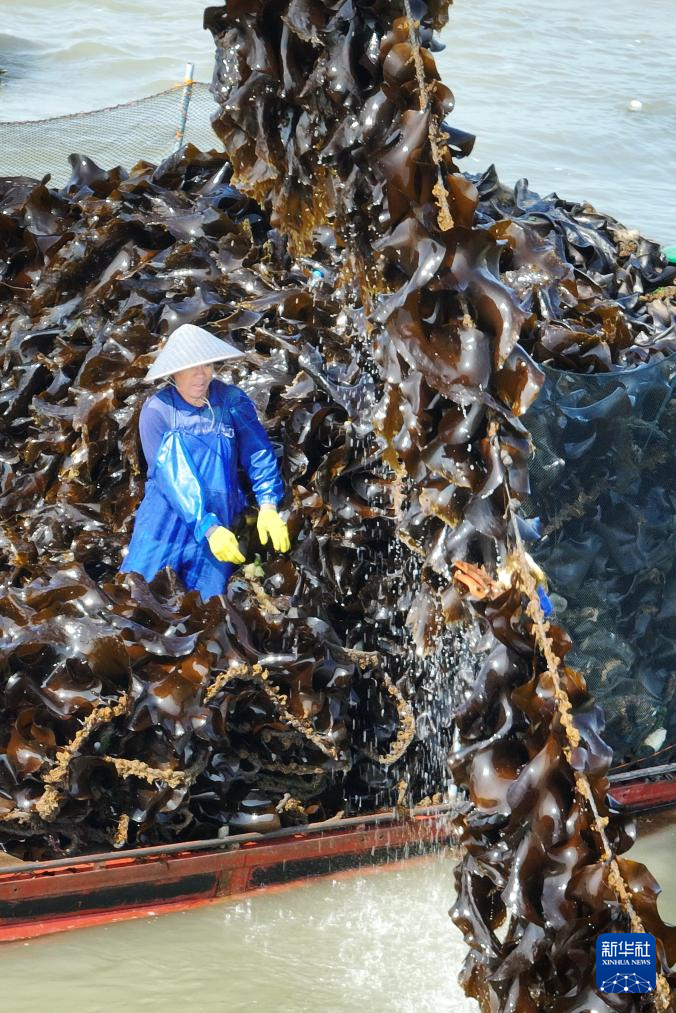 近日,福建省宁德市霞浦县迎来海带收获季。海带是霞浦县农业经济的传统主打产品之一,是当地不少农(渔)民家庭经济收入的主要来源,霞浦县于2009年被授予“中国海带之乡”称号。目前,全县养殖海带占海面积约30万亩,产值约40亿元。