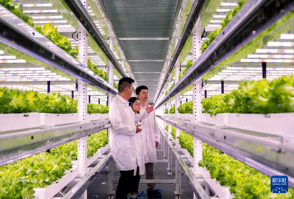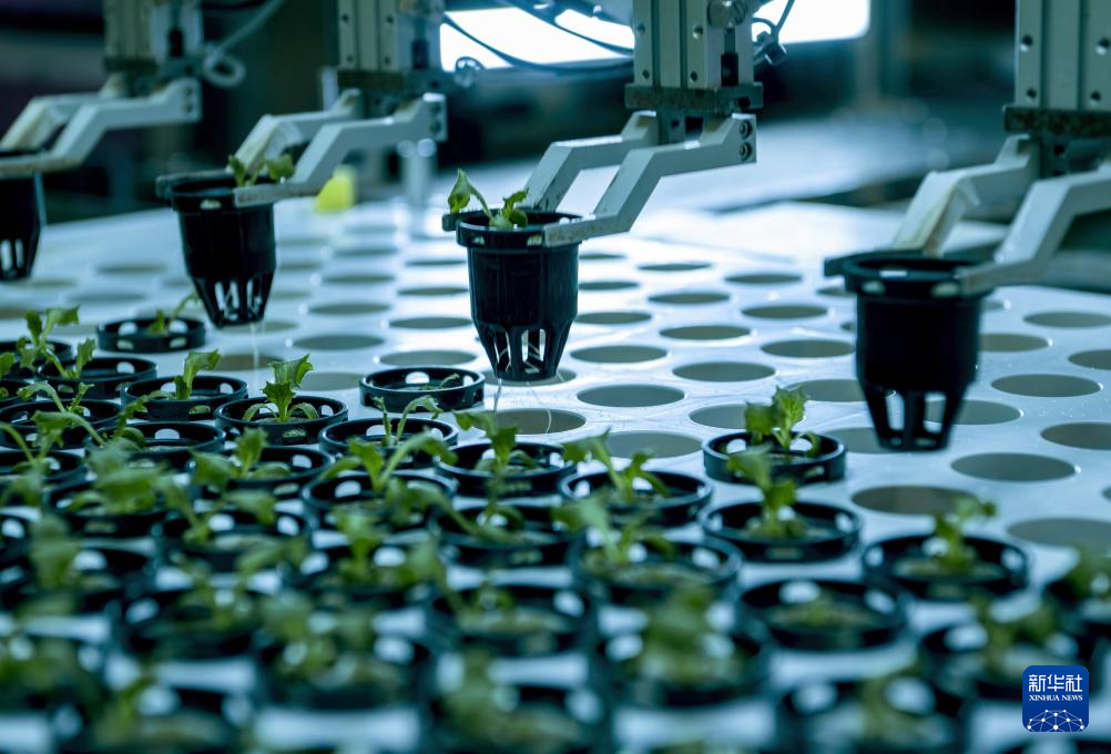 在新一代自动化无人植物工厂,智能机器人进行自动化生产(5月8日摄)。新华社记者 魏培全 摄