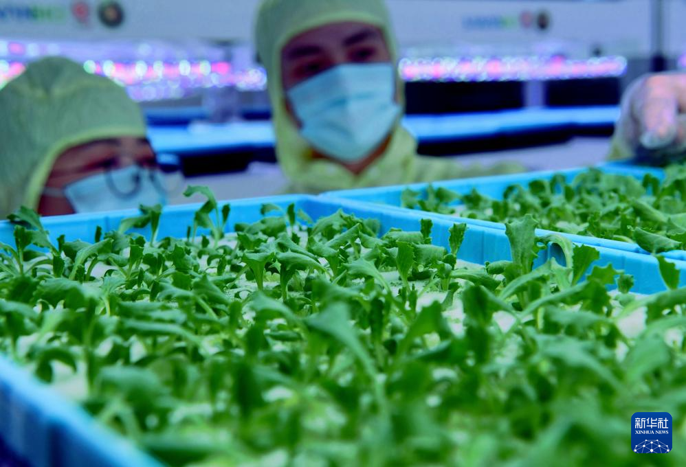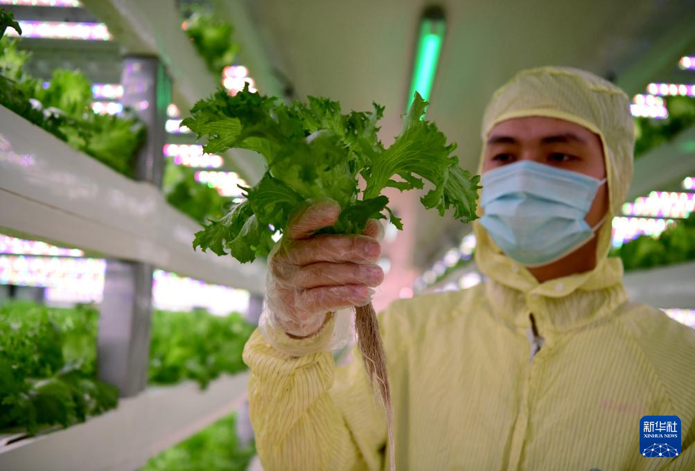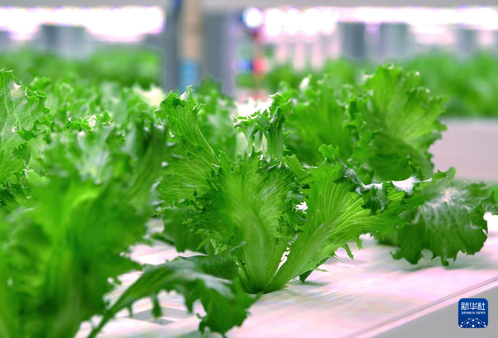 生菜在特殊的LED灯照射下长势良好(5月8日摄)。新华社记者 魏培全 摄