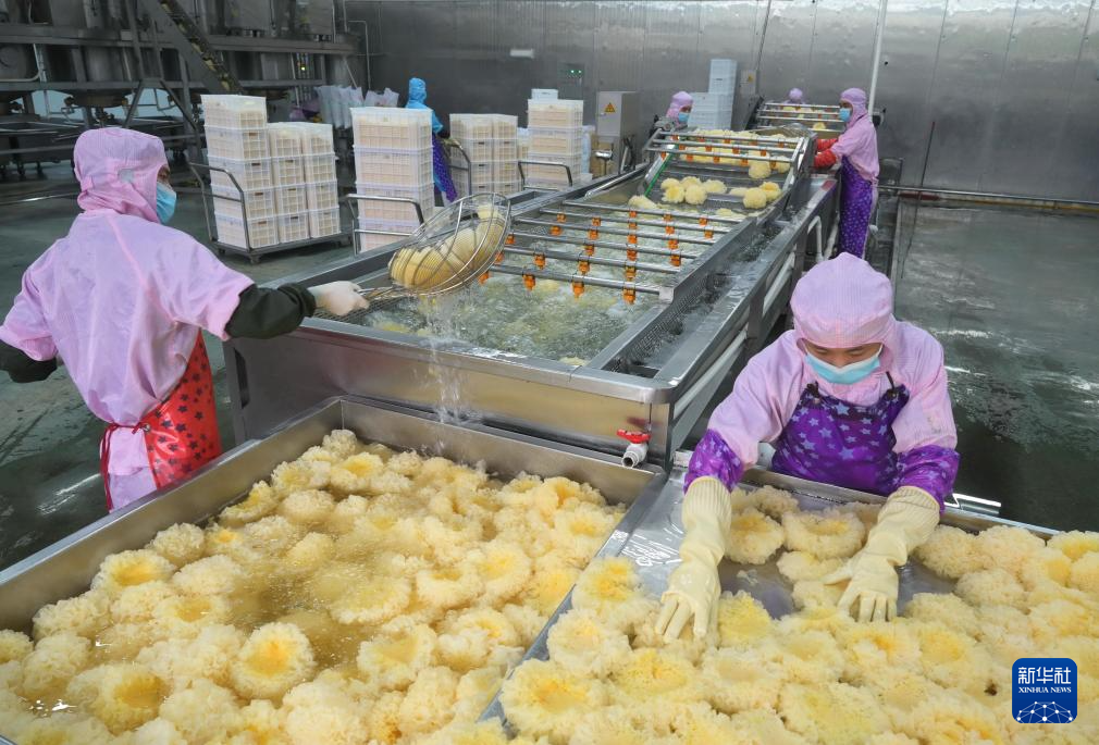 5月10日,在福建省宁德市古田县,三朵银花(福建)食品有限公司员工在挑选清洗银耳。新华社记者 林善传 摄