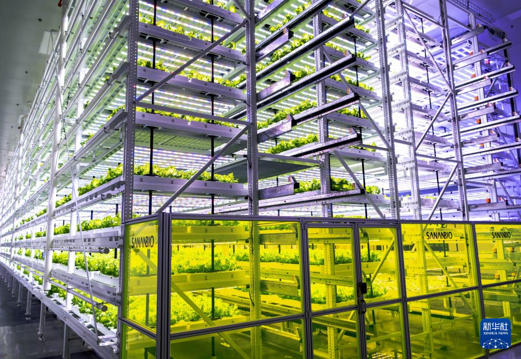 在福建省泉州市安溪县中科三安植物工厂的智能车间,记者看到,绿油油的蔬菜在立体植物栽培架上接受LED灯照射,长势喜人。车间里没有工人,蔬菜的播种、育苗、分栽、采收到包装皆由自动机械臂定点定时完成。