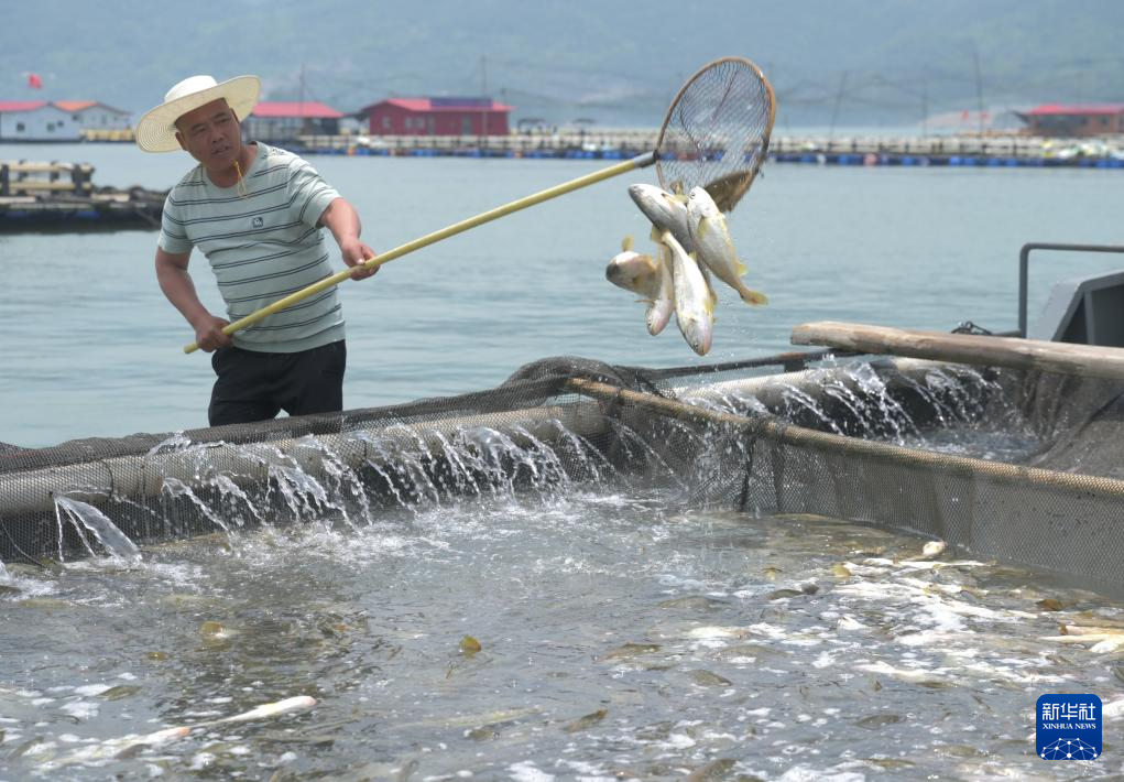 2024年5月8日,养殖户在福建宁德三都澳白基湾渔排挑选大黄鱼。新华社记者 林善传 摄