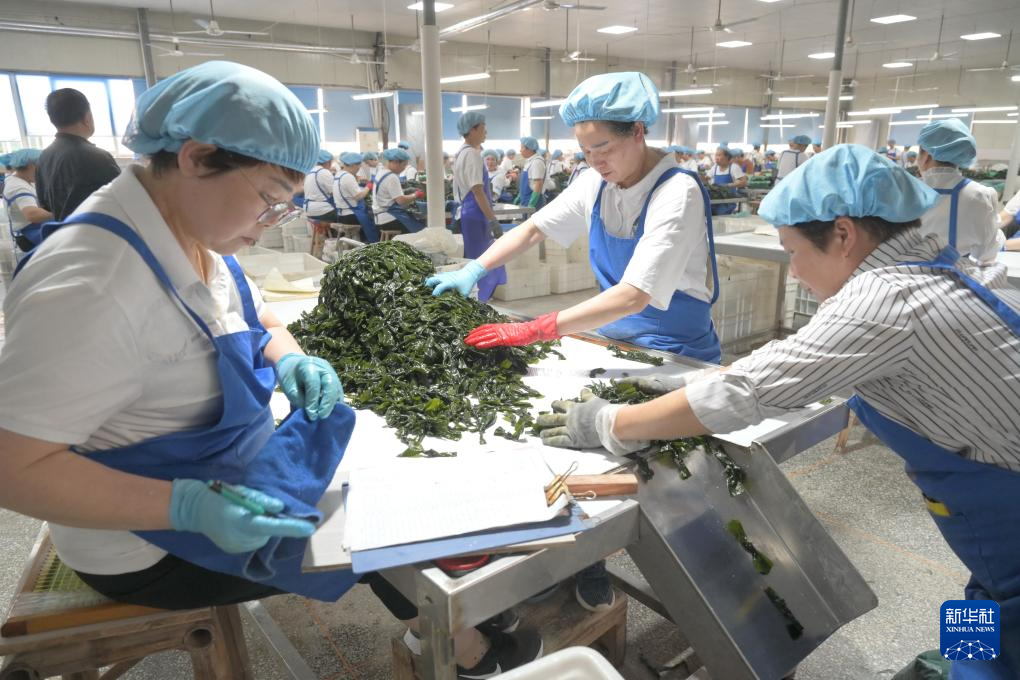 2024年5月8日,在福建省霞浦县,福建溢源海洋食品有限公司工人在整理、加工海带。新华社记者 林善传 摄