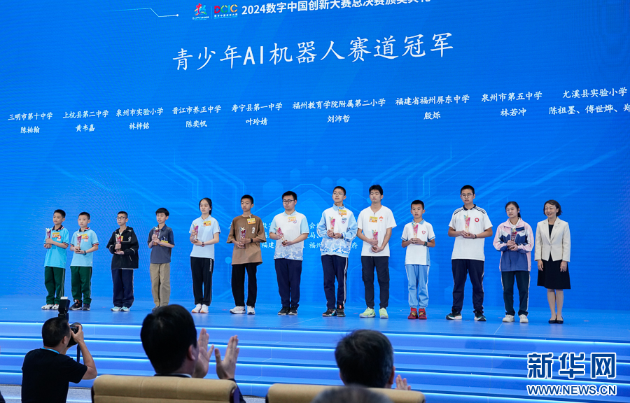 新华网福州5月26日电(蒋巧玲)25日,2024数字中国创新大赛总决赛颁奖典礼在福州海峡国际会展中心举行,现场为数据要素、智能科技、青少年AI机器人等12个赛道颁发了72个最高奖项。