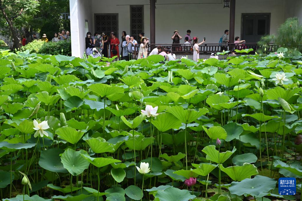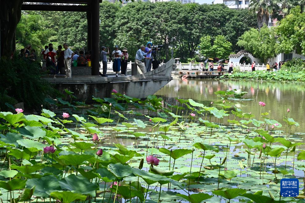5月26日拍摄的福州茶亭公园内的荷花。 新华社记者 姜克红摄