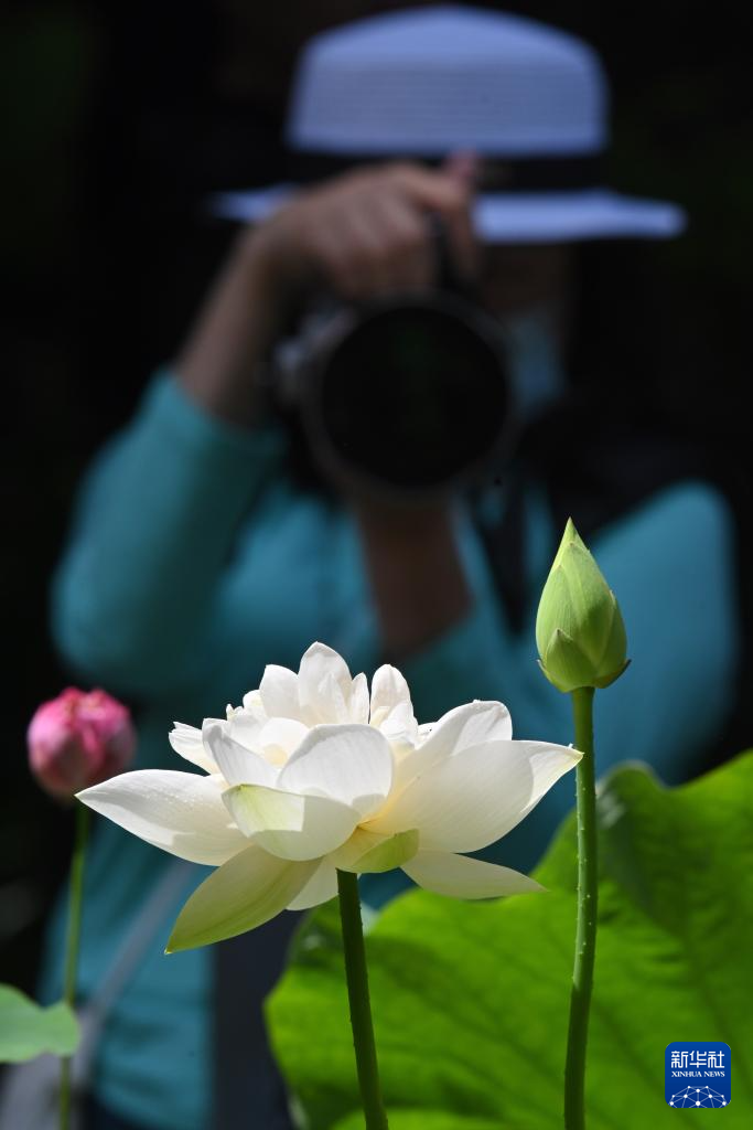 5月26日,市民在福州茶亭公园内赏荷拍照。 新华社记者 姜克红摄