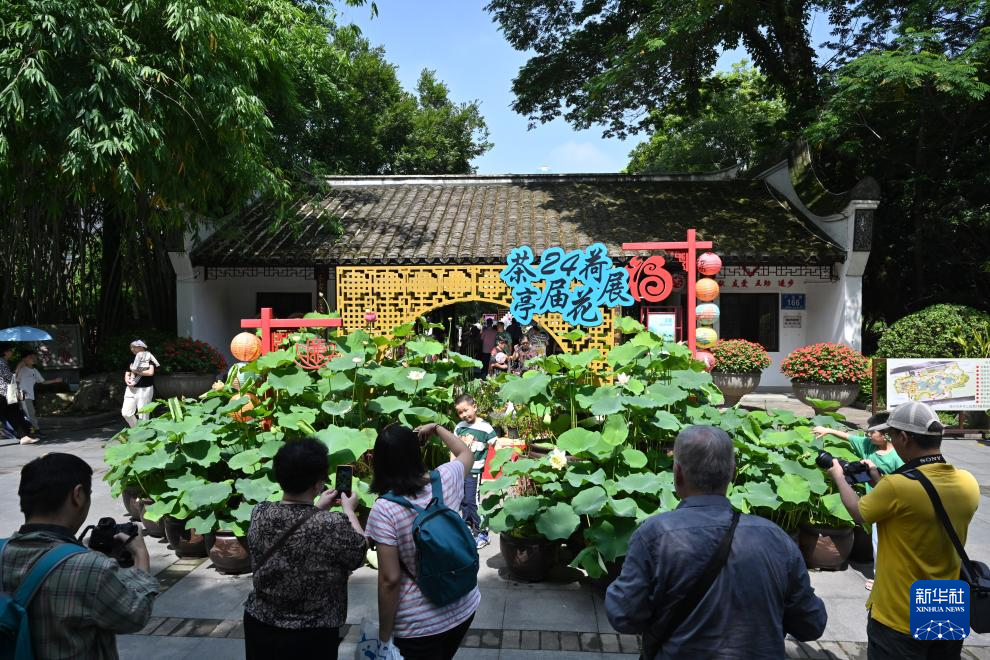 初夏时节,福州各公园内的荷花陆续盛开。日前开幕的第24届茶亭公园荷花展展出的600多盆精品荷花争奇斗艳,吸引众多市民前往赏荷休闲。
