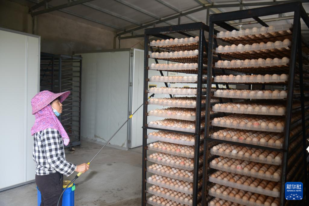工人正在为即将送入智能孵蛋机的鸡蛋消毒。新华社记者 李昊泽 摄