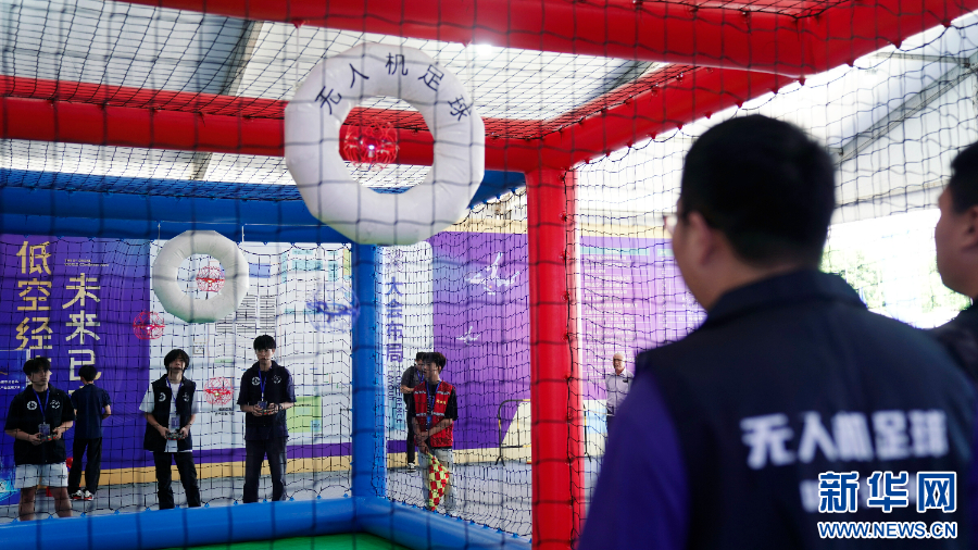 科技与体育结合的无人机足球赛表演。新华网发(主办方供图)