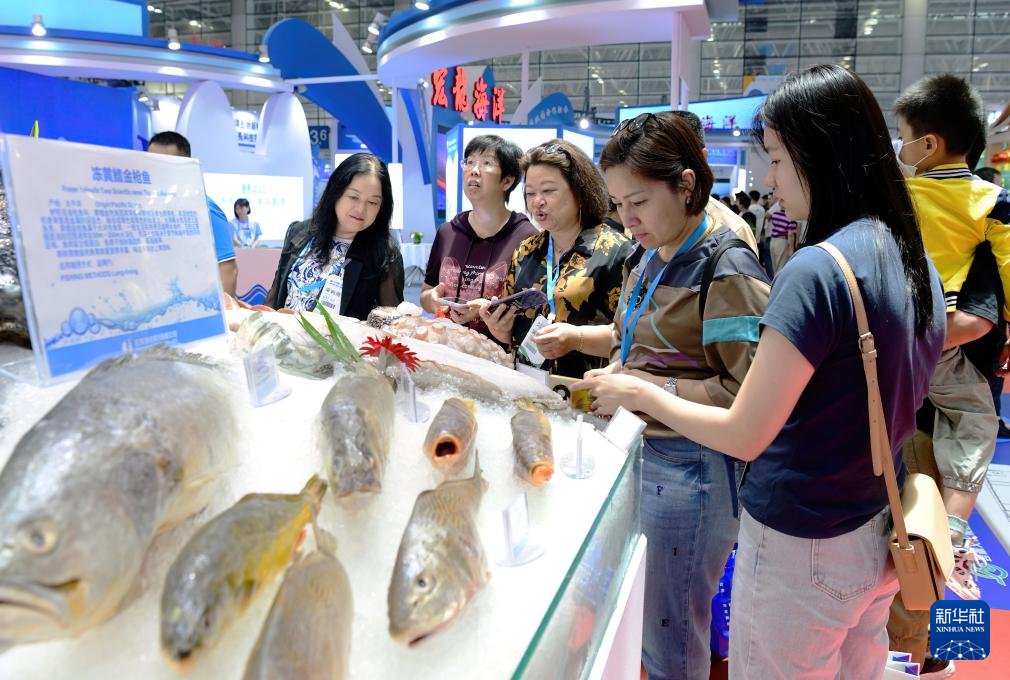 5月31日,参观者在中国(福州)国际渔业博览会选购商品。新华社记者 林善传 摄