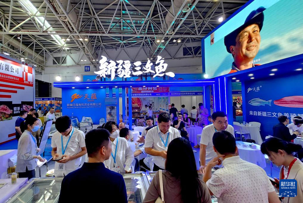 5月31日,参观者在中国(福州)国际渔业博览会上了解新疆三文鱼。新华社记者 魏培全 摄