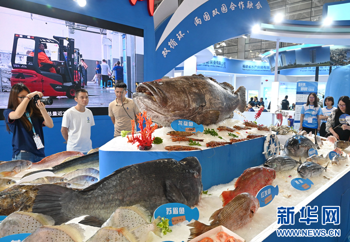 5月31日,中国(福州)国际渔业博览会在福州海峡国际会展中心开幕。现场,来自国内国外的各种鱼虾琳琅满目,一条重达126公斤的龙趸鱼更成为网红打卡点。“好多鱼都是难得一见的。”现场观众不时驻足观看、拍照。