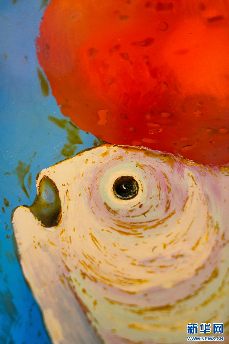 这是微距镜头拍摄到的金鱼漆器。新华网 肖和勇 摄