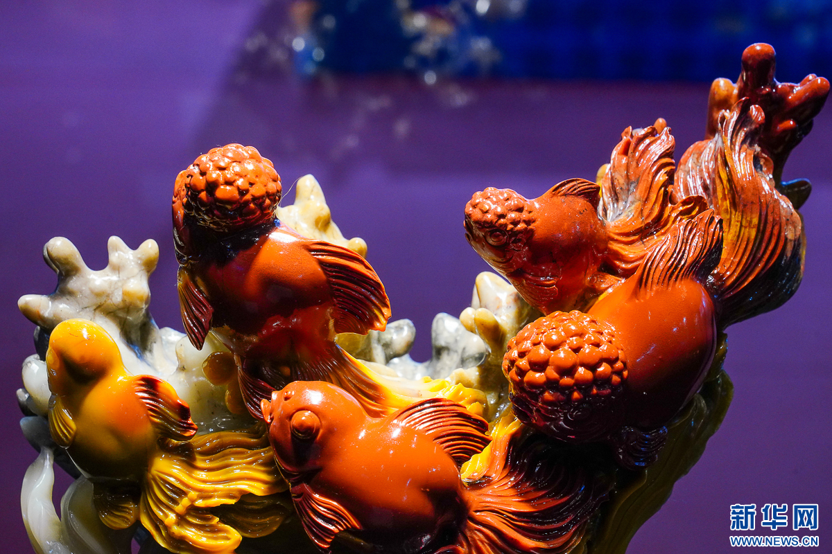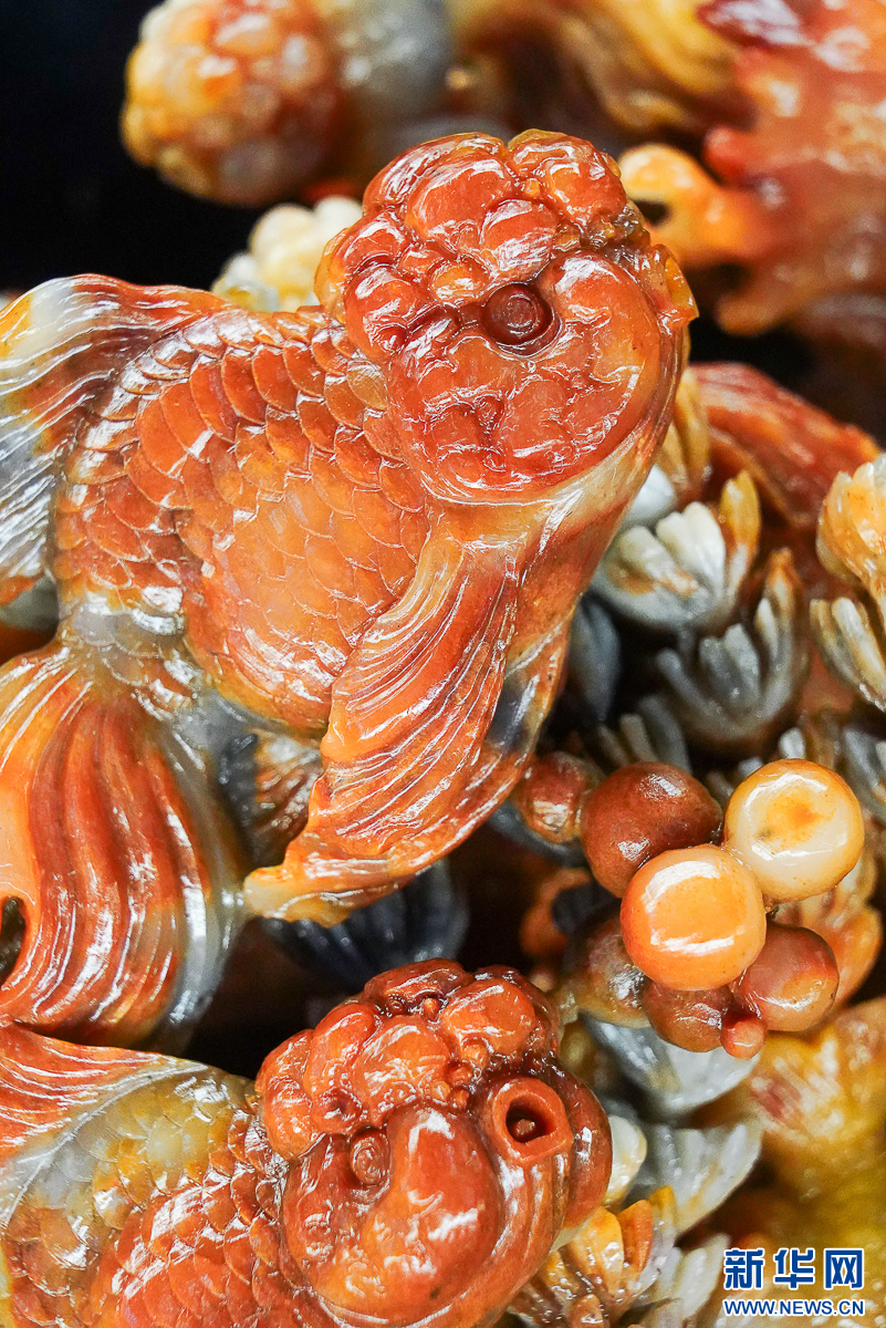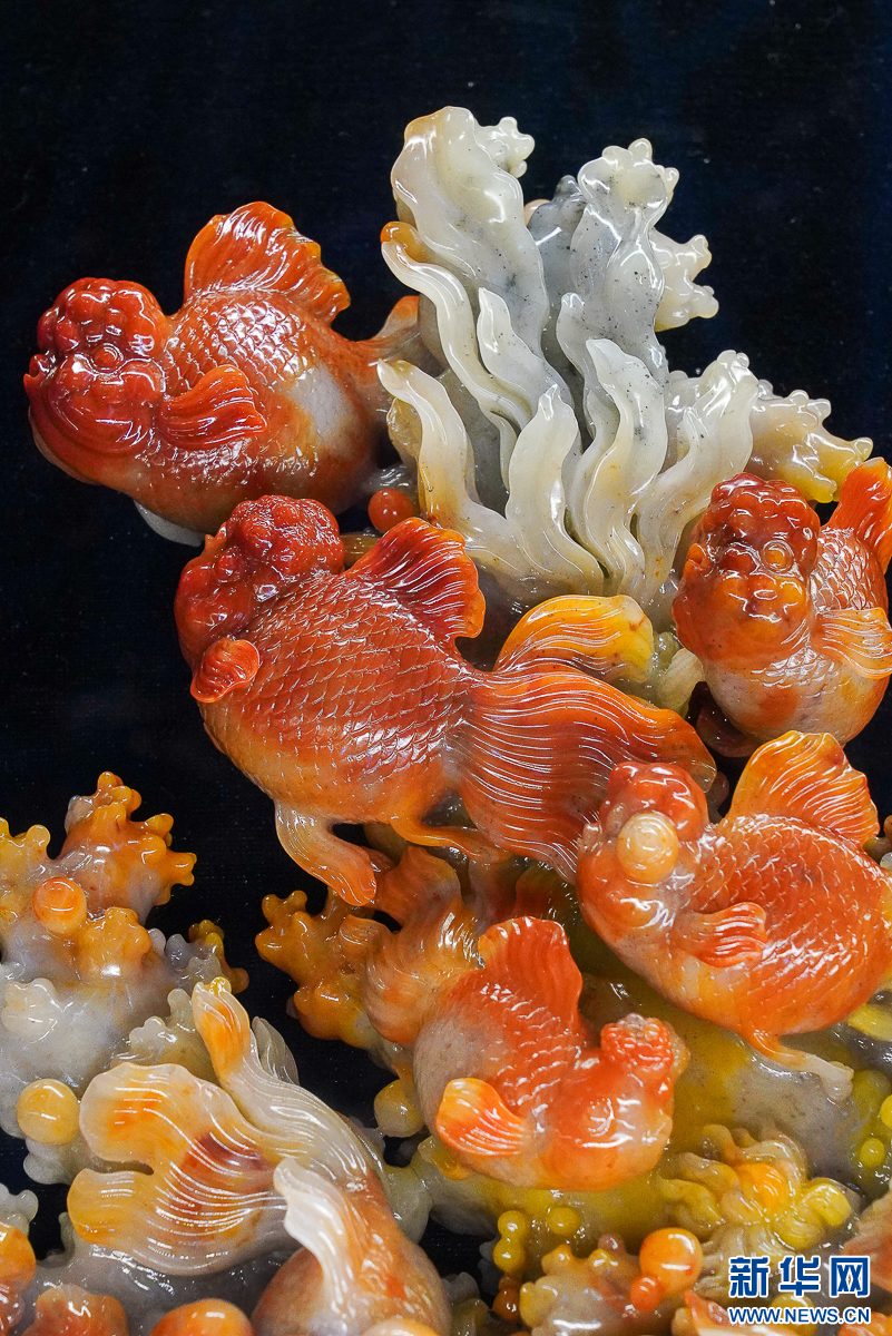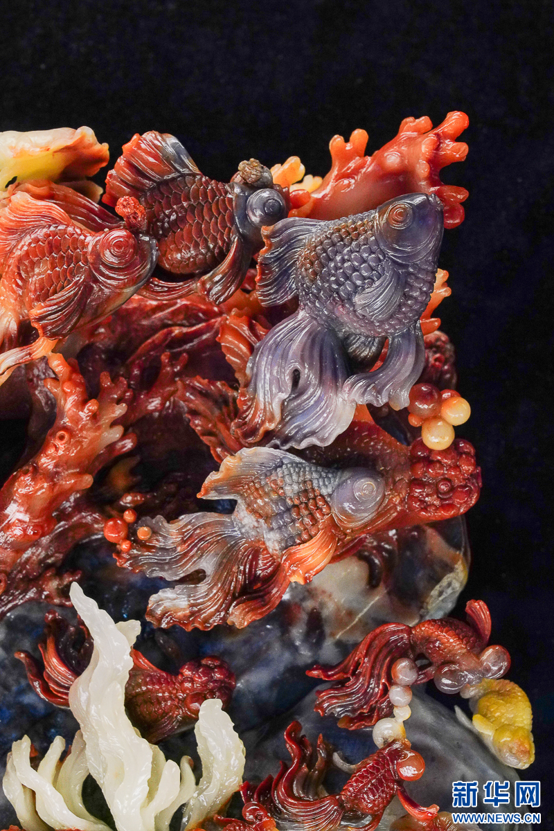 这是寿山石雕里的金鱼群像。新华网 肖和勇 摄