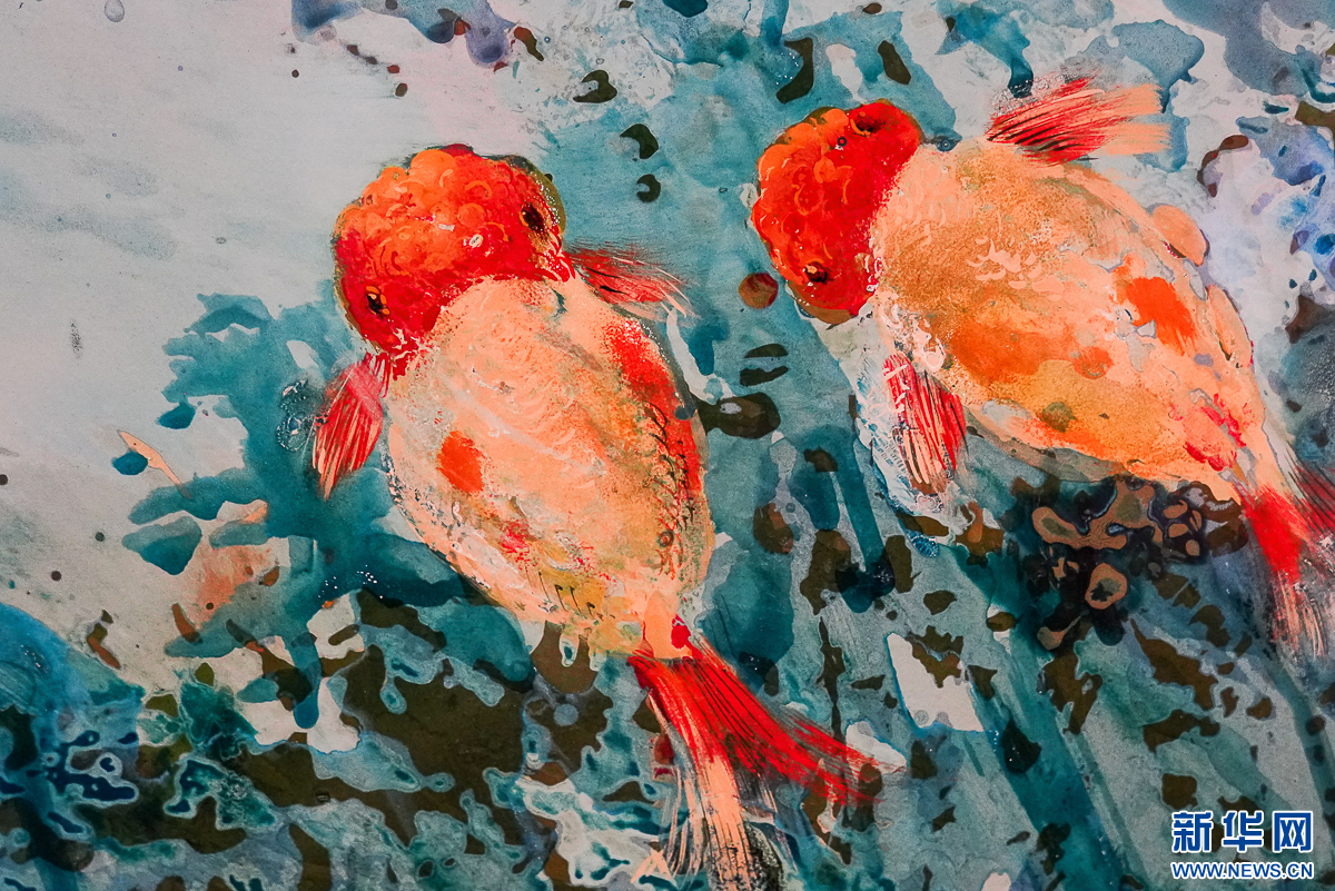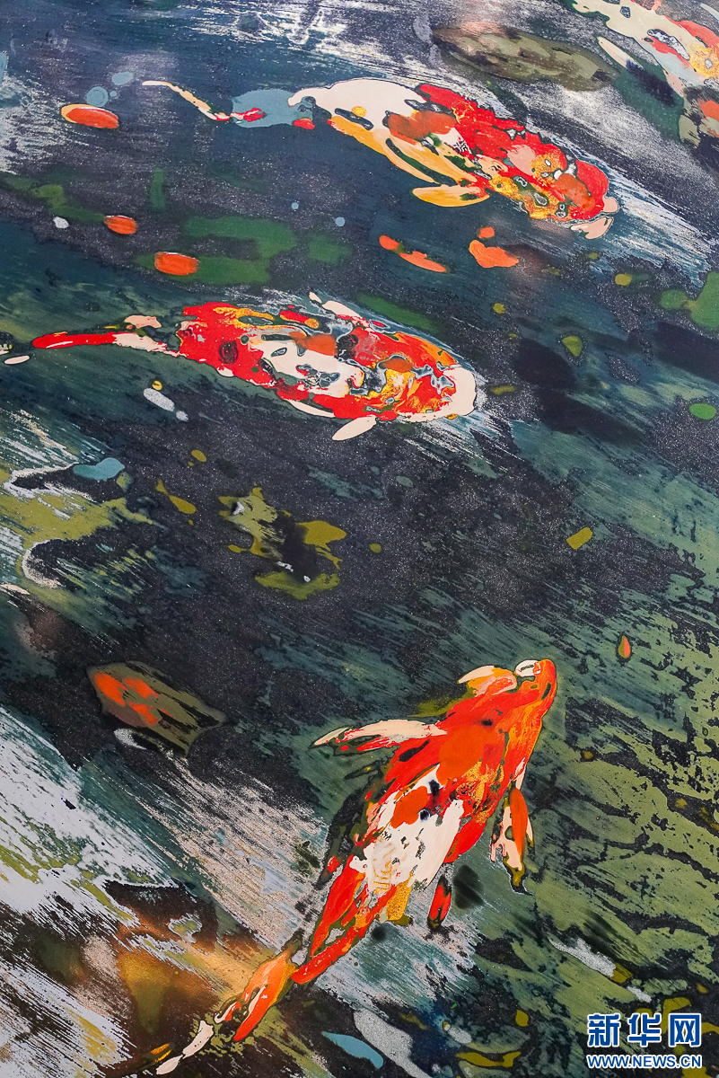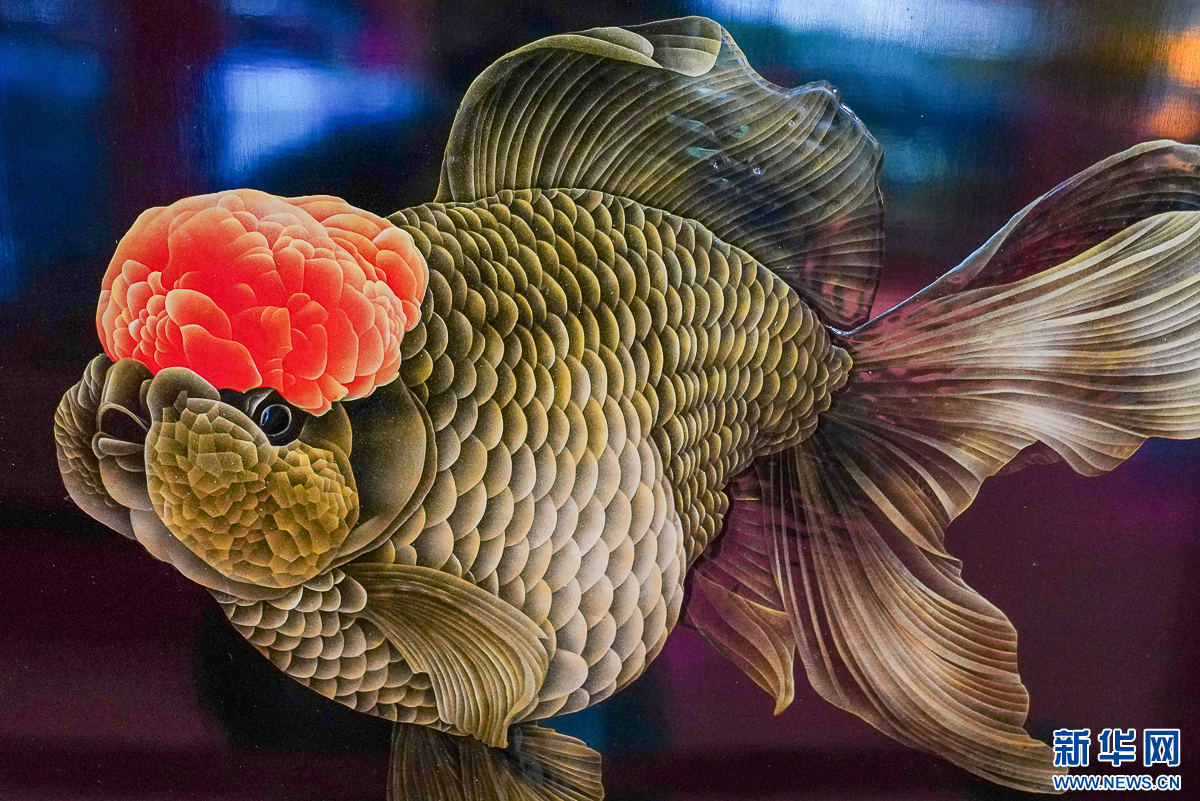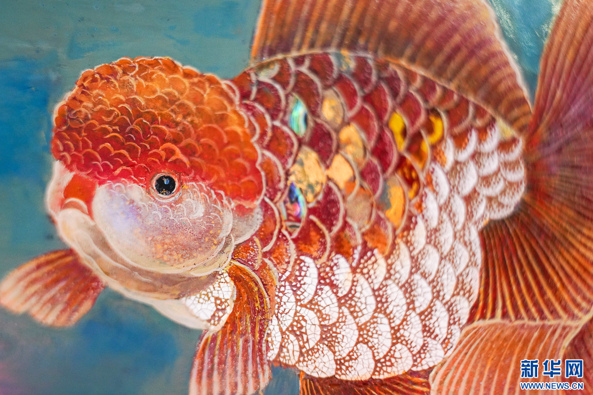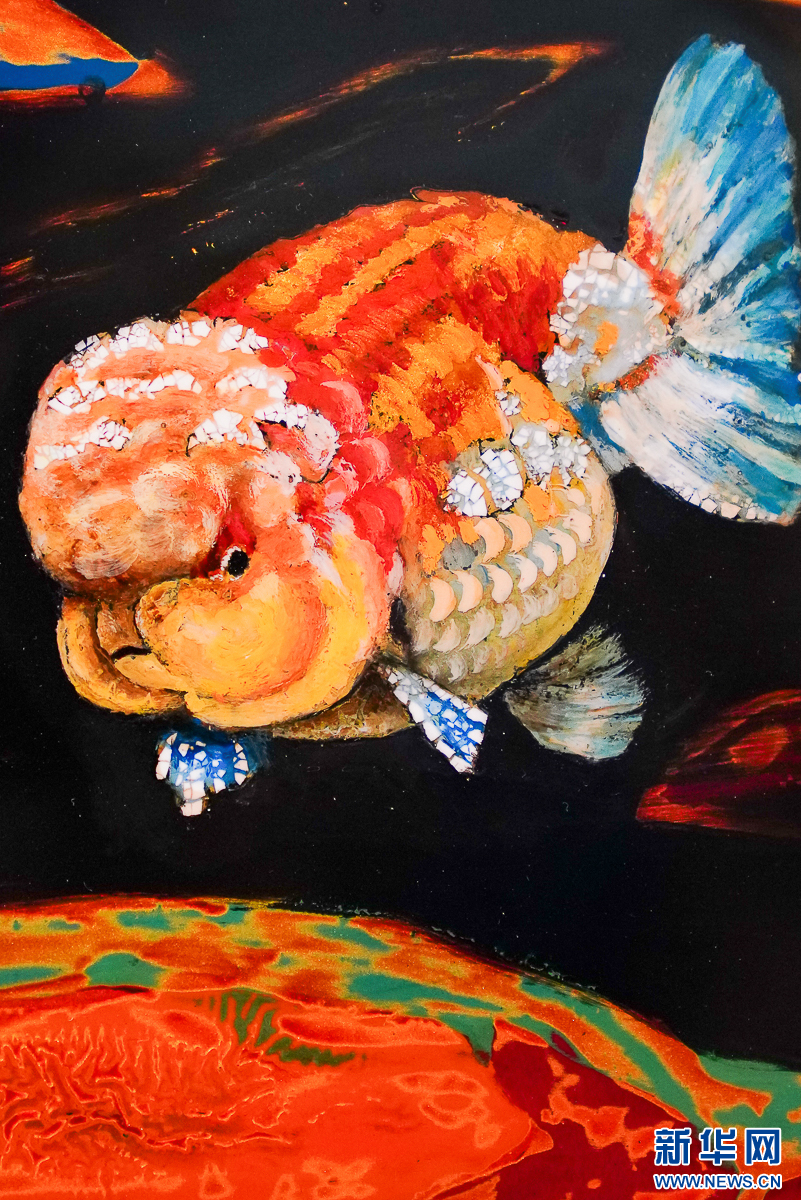 这是漆器作品中游动的金鱼。新华网 肖和勇 摄