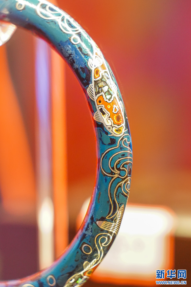 这是获得金奖的金鱼漆器作品。新华网 肖和勇 摄