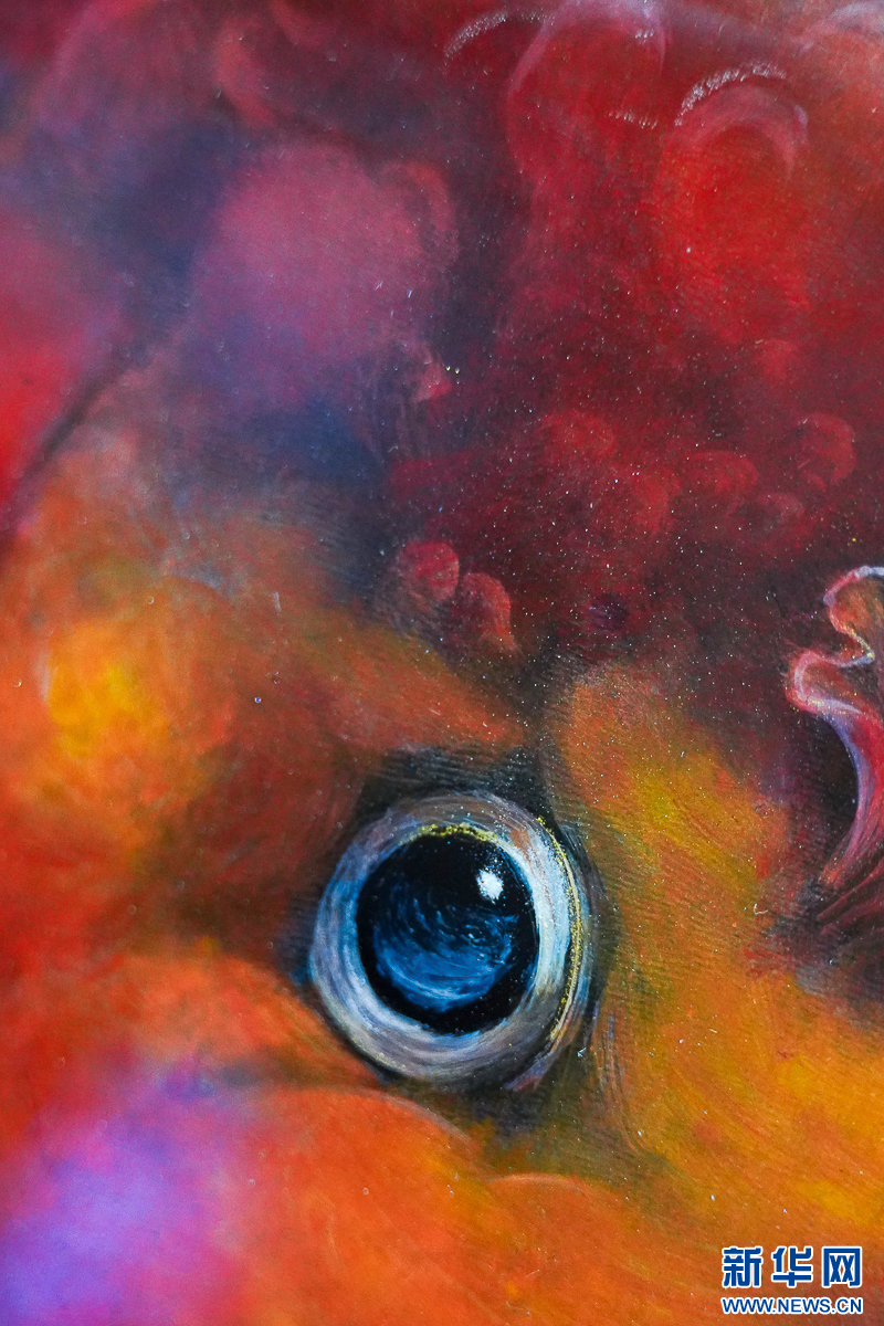 这是微距镜头拍摄到的漆器作品局部,金鱼眼睛很是传神。新华网 肖和勇 摄