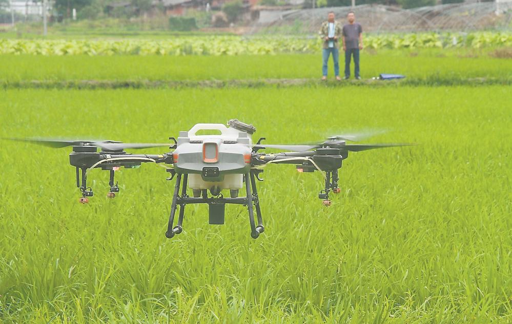 近年来,闽北偏远乡镇顺昌县岚下乡积极推动乡村智慧农业产业发展。目前,全乡拥有智慧农业合作社3家,配备大型无人机3台、智能翻耕机若干台,基本实现全乡水稻生产从播种到收获全智能化作业。图为近日,农民操控无人机在农田里察看病虫害。(陈柏材 谢志唅 摄影报道)